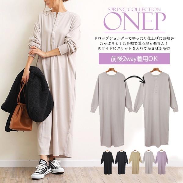 スウェットワンピース ロング 長袖 レディース メール便c 送料無料 スエットワンピース 2way 背中ボタン リブ切替 裏毛 マキシワンピース Plaisir プレジール 通販 Yahoo ショッピング